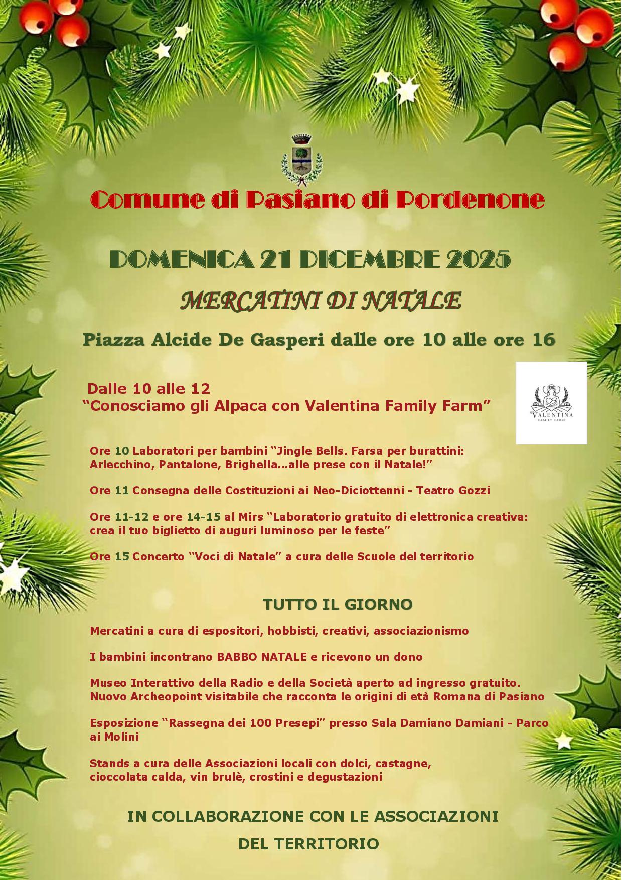 - APERTURA GRATUITA per tutti con ORARIO CONTINUATO in occasione delle Casette di Natale di Pasiano di Pordenone